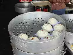 • Steamed Buns: Soft dough, generously filled with minced pork and other fillings. The buns are large enough to fill you up for a small meal.
