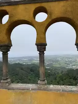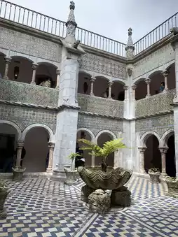 We started at the vibrant Pena Palace, perched high above the town — a bold mix of colours, domes, and towers. The views from the terrace stretch all the way to the Atlantic on a clear day. Inside: intricate ceilings, royal furnishings, and plenty of tilework.