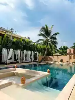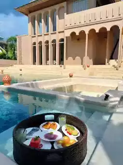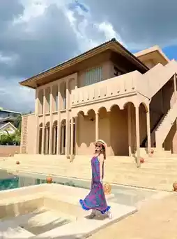 The yellow castle paired with greenery feels like being in ancient Rome~ The castle style is incredibly photogenic 📷. Swimming in the outdoor pool in the courtyard at dusk creates the perfect atmosphere~ Pair it with floating afternoon tea and you can shoot stunning photos in minutes~