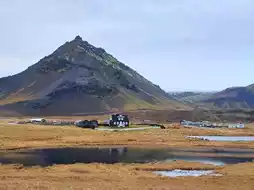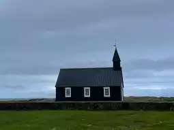Head west ~30min (20km) on Road 54 to Búðakirkja (Black Church) in remote Búðir—its pitch-black wood contrasts epic lava fields & Snæfellsjökull glacier 🏔️.