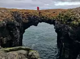 Start in Arnarstapi, a quaint fishing village with dramatic basalt cliffs, sea caves, and the iconic Gatklettur arch—perfect for birdwatching (spot kittiwakes & terns! 🐦) and folklore vibes at the Bárður Snæfellsás statue, a half-troll guardian 🗿.