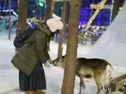 There are many places to go up to see the view of the roofs, some with an additional fee and some for free. On top, there is also a reindeer garden where you can feed them. The fee is 50 yuan per person, and you will get a moss basket to feed the deer.