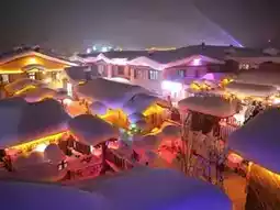 Snow Town is a destination you shouldn't miss when visiting Harbin. It's stunning both during the day and at night. There are various activities to enjoy, such as dog sledding, holding mountain fox cubs, feeding reindeer, and admiring the mushroom-shaped rooftops of the village covered in snow.