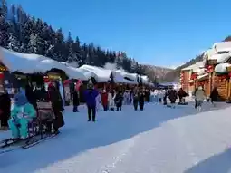 Visitors stroll through the snow-covered lanes, fully immersed in the magic of winter. Far from the hustle and bustle, this serene snowscape offers a truly enchanting escape into nature's most beautiful season.