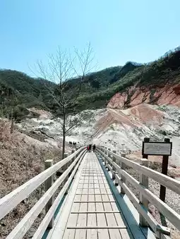 After checking out, we drove for about an hour and arrived at the Noboribetsu Sakuragi Tunnel at 0955. The cherry trees were already very withered. The weather was very good and I suddenly wanted to visit Jigokudani. The sky was cloudless and I felt particularly refreshed.