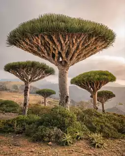 Dragon Blood Trees began to appear, one by one, like open umbrellas.