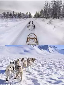 Here, a dog sled is a sled with two people, pulled by five sled dogs. Some are pulled by seven sled dogs! Dog sledding is a team sport, and these dogs need to be specially trained for 1-2 years, or even 3-5 years, to be qualified!