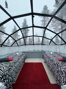 In Finland, staying in a glass igloo is truly an unforgettable experience. The one we found is actually a very famous place. The outdoor space is incredibly vast and snow-covered mountains and open fields as far as the eye can see. Walking through the snow and taking in the scenery is absolutely stunning.