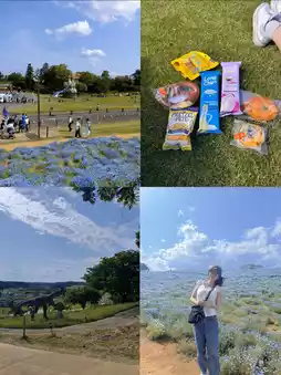 After enjoying the nemophila flowers, I got some sweets from the shops and had a picnic on the lawns, spending a relaxing time🫶🌿
