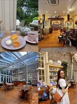 The gift shop is spacious and two stories high, and cute goods are crowded together. Just looking at the cafe makes you feel like you've really come to England🫶