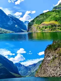 The Sognefjord, the second-longest fjord in the world and the longest in Norway, has many branches. This time, I took a boat tour of the southern branch: the Nærøyfjord. The Nærøyfjord is listed as a World Heritage Site in the Western Norwegian Fjords and is Norway's most famous tourist destination.