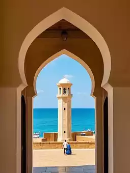Arrive in Sohar and check in to a unique beachfront hotel, where your private balcony overlooks the vast Arabian Sea. After settling in, take a stroll along the Sohar Corniche. Feel the gentle sea breeze and watch the waves crash against the shore as the setting sun paints the sky in hues of orange and red, reflecting a shimmering glow on the sea. Swaying palm trees line the boulevard, and the silhouette of distant buildings creates a picturesque scene. From the moment you arrive, you'll be captivated by the tranquility and beauty of this place.