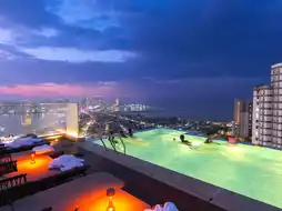 A rooftop infinity pool with a beautiful night view, Home Marina Sokcho Hotel👙