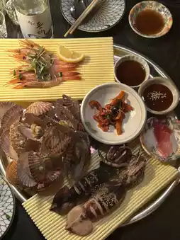 I had steamed scallops and boiled squid, and they were so delicious!!