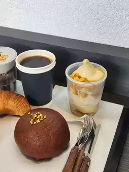 🤍I visited Sokcho Cafe ‘Gwit’ on a rainy day. The scenery was more picturesque thanks to the rain. I was looking out the window while drinking coffee, and the rain stopped and Ulsanbawi gradually appeared. That moment was so beautiful that I can’t express it in words, and the adults around me were also amazed, saying, “It’s even better because it’s raining.” The strong Americano and sweet corn ice cream were especially impressive, and the harmony of the soft milky scent, rich corn flavor, and espresso was very appealing. The texture was rich thanks to the roasted corn topping! The bakery was average, but the view made up for it all. The interior is small, but when the weather is nice, the outdoor tables are the best. I recommend going at opening time on weekends!