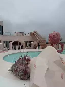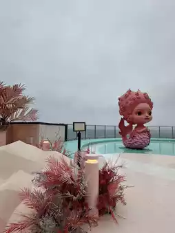 The Oasis X cafe on the 4th floor has a wide ocean view and a sensual pink and desert-toned interior, making it the perfect place to take a great photo.📸 It is a healing spot where you can have a conversation or think while taking in the ocean and media art at a glance.