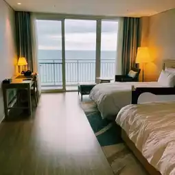 Breakfast is decent, and it's highly recommended to relax at the hotel's café or lounge while gazing at the ocean. The resort is directly connected to the beach and is close to Sokcho Central Market and the local food street, making it easy to explore the area without a car.