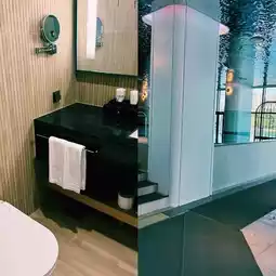 The hotel also has various auxiliary facilities, such as a water park, swimming pool, sauna, fitness center, and rooftop, so