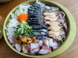 We ordered mulhoe for two, one hoe-deopbap (raw fish rice bowl), and one squid sundae (stuffed squid).