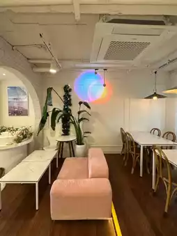 The spacious interior accommodates group guests, and there are photo zones set up for capturing aesthetic shots.