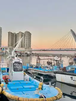 Sokcho, a famous city in Gangwon Province, is home to Daepo Port. While the port itself, with its docked boats, is quite picturesque, the bridge on the opposite side is truly breathtaking and a popular spot for taking memorable photos. Across the bridge, there is a shopping area with a charming small fishing village vibe, making it an ideal place for a sentimental trip. Nearby, you'll find a variety of restaurants, including seafood eateries and other local delicacies.