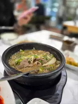 While traveling domestically, Ttukbaegi Yangpyeong Haejangguk in Sokcho's Joyang branch is a great spot for breakfast. Located near the Sokcho Expo Grass Plaza, this restaurant specializes in haejangguk (hangover soup) and opens early in the morning. In Sokcho, where breakfast options are limited, this is one of the must-visit restaurants to enjoy a hearty meal. They use 100% pure broth cooked in a traditional cauldron to prepare their haejangguk. The menu includes dishes like naejangtang (soup with plenty of intestines), bone haejangguk, ttukbaegi bulgogi, and pollack haejangguk.
