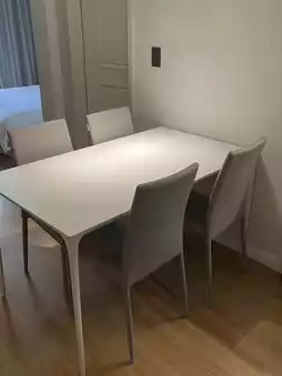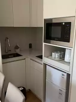 The bathroom was stocked with Balmain amenities, which I enjoyed. The kitchen had a microwave, refrigerator, and electric kettle, making it convenient for preparing and storing simple meals. There was a table for four, so it was perfect for dining. π΄