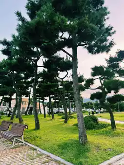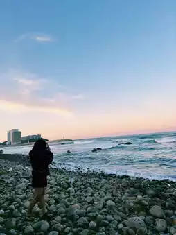Around the seaside, there are small cafes and food stalls where you can enjoy a quick snack or drink while taking a break. If you're with children, the beach is perfect for spending time playing in the sand. Especially at sunset, the sky and sea blend into a stunning red hue, making it an ideal spot for photography.