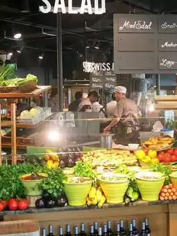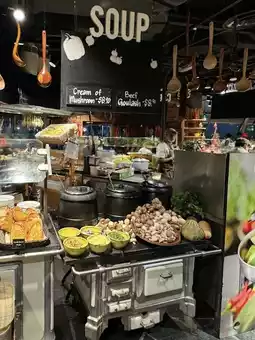 The moment you walk in, it’s like entering a cozy European market. Wooden beams, warm lighting, and open kitchen stations give it that “Swiss chalet” charm. It’s not just a restaurant, it’s an experience. The whole setup makes you feel like you’re wandering through a gourmet market in the Alps, minus the jet lag.