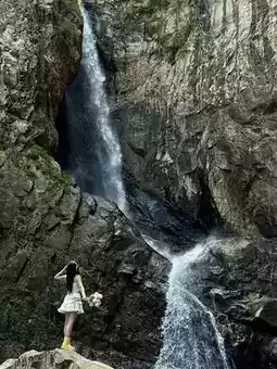 Find the biggest and tallest rock on the left side below the waterfall, stand on it and take a photo with the waterfall! Remember to focus on the person and lower the exposure to capture the perfect vibe that will blow up your social media~