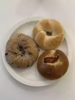 🤍Convenient parking available within the building, and the spacious table arrangement creates a very comfortable atmosphere. The store is clean, and the owner is incredibly friendly. They offer a variety of menu items, including bagels, pies, and freshly made soup. Especially before 11 AM, you can enjoy a morning set with soup, bagel, and a mini salad at an affordable price. Personally, I loved the Sun Basil Bagel—the combination of basil and tomato was absolutely delicious. The coffee is rich, and the strawberry latte is perfectly sweet, just right for my taste. A place with great ambiance and delicious food—highly recommended!