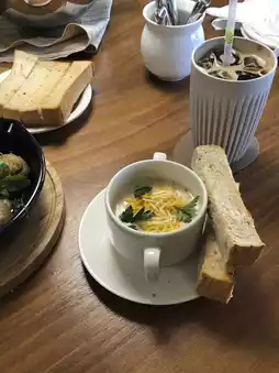It's the perfect healing space, where you can sit by the sun-filled window, enjoy a cup of fragrant coffee, and savor their special cream cheese toast.