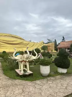 Wat Phra Non Laem Pho is not a very big temple. It is located on Koh Yo next to the sea. It is easy to travel. Drive across the Tin Bridge and you will find the temple. It is a temple with very good air, beautiful sea view, and a view of the reclining Buddha. The golden reclining Buddha is very big. Foreign tours like to take you to see the reclining Buddha at this temple. When we went, we liked Malaysians too.