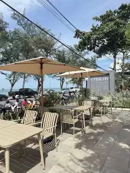 • There are both indoor and outdoor zones by the sea, cool breeze, wave music, decorated in a modern minimalist style.