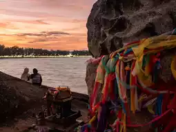 #VisitHatYai #Songkhla Kao Seng is a familiar name to Songkhla residents and tourists fascinated by the legends and natural beauty of Thailand's coastline. The name comes from the fascinating legend of Nai Rang, a devout Buddhist ruler who brought treasures to enshrine the relics of the Lord Buddha. However, an unexpected event brought his wealth and life to a tragic end on this shore.