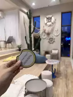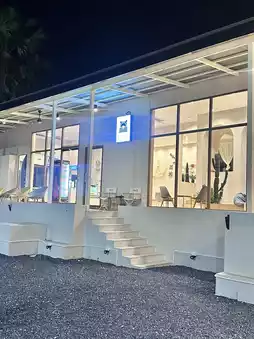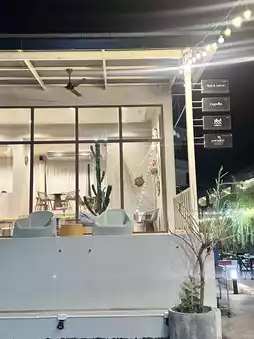 Heartmade Solis Cafe, Songkhla branch, open daily from 7:00 AM to 8:00 PM. This cafe is located inside the Solis Hotel, opposite Chalatat Beach. The drinks are rich and well-balanced. The prices are a bit steep, but if you've had coffee before, you might find them to be average. However, the atmosphere is amazing! The cafe is beautifully decorated, with a blue theme, boats, and the sea. Every corner is stunning. You'll definitely appreciate the atmosphere. #SongkhlaOldTownCafe