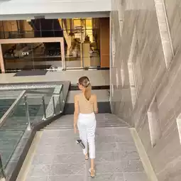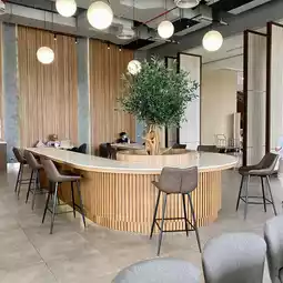 Upon entering, you'll feel incredibly comfortable. The cafe's minimalist decor is accented with warm tones.