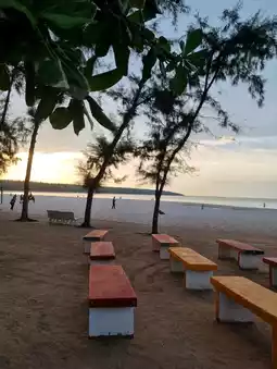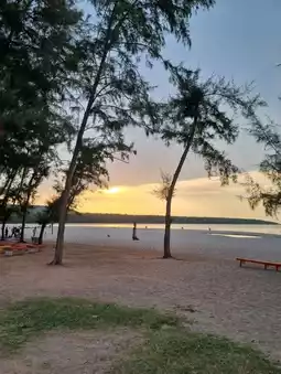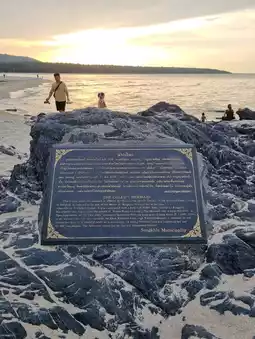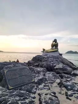 Samila Beach is a serene destination in Songkhla Province, known for its fine white sand and shaded pine trees. The beach's highlights include the Golden Mermaid statue, a symbol of the province, and the Mouse and Cat statues. From here, you can enjoy a clear view of Koh Nu and Koh Maew (Mouse and Cat Islands). Visitors can engage in various activities such as strolling, photography, watching the sunset, picnicking, or renting bicycles or horses for a ride along the beach. Additionally, there are restaurants and souvenir shops nearby.