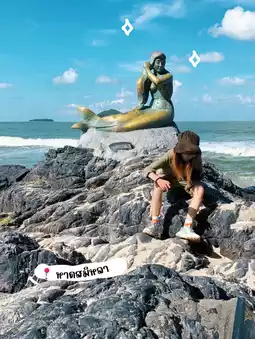When in Songkhla, don't miss taking a photo with the Golden Mermaid 🐚, located on Samila Beach. The wide ocean and cool breeze are just the perfect atmosphere.