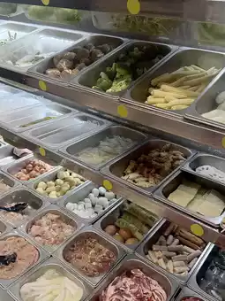 Mala by the kilo, 39-45 baht per kilo, with 4 delicious soup bases. Plus, there's a huge selection to choose from! Definitely worth the price! 👍🏻