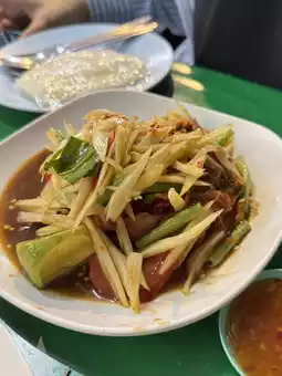 At this restaurant, you'll savor Somtam with a perfect balance of sour, spicy, and slightly sweet flavors. Fresh ingredients and generous seasonings make every Somtam dish incredibly spicy and irresistible. If you enjoy a truly fiery and satisfying flavor, you're sure to be hooked with every bite.