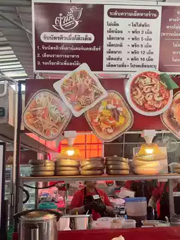 • "Somtam with small noodles, fresh shrimp, crispy pork" received positive reviews. "Spicy, rich, and spicy papaya salad with fermented fish sauce."