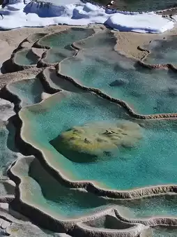 Visit Huanglong Scenic Area and explore the colorful pools, snow-capped mountains, canyons, and forests.