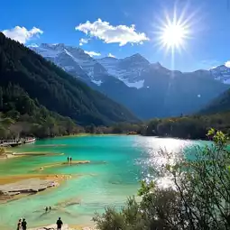 Huanglong's star attraction! The water in the calcified pools changes with the light, displaying shades of blue, green, gold, and red, like an overturned artist's palette! It's best to arrive before 9am, when there are fewer crowds and the light is perfect for photos 📸 (remember to bring a wide-angle lens!).