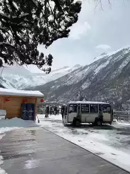 Traveling We took the high-speed train at 6.45 from Chengdu and arrived at Huanglongjiuzhai Station at around 8.30. Then we took a bus to Huanglong, which took about 45 minutes. When we arrived, we left our bags first. There was no charge. Then we took our passports to exchange for tickets to enter the park. Then we walked to wait for the park’s green bus to go to the cable car entrance, which was about 1 kilometer away. The bus is free.
