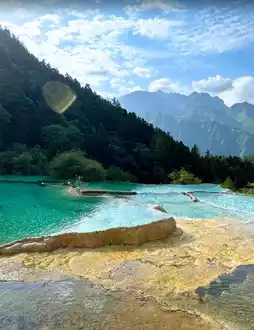 4️⃣ Huanglong Scenic Area: Truly a "fairy pool"! The terraced, colorful calcified pools are breathtakingly vibrant.