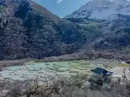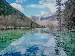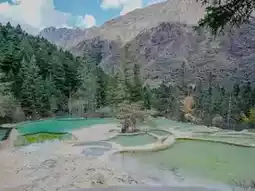 Explore Huanglong National Park, also known as the Yellow Dragon Valley, located in the Minshan Mountain Range in Sichuan Province, China. The park is renowned for its stunning turquoise pools scattered amidst towering mountains, complemented by ancient temples nestled in the heart of nature. The area boasts abundant natural beauty, including waterfalls and limestone lakes.