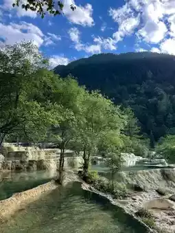 #chinatravel Huanglong Scenic Area in Sichuan is straight-up magical. Think turquoise pools, crazy rock formations, and mountains that look like they’ve been filtered IRL. The colorful terraced pools are the main event they’re super unique and honestly kinda hypnotizing. You’ll just keep snapping pics and staring because it doesn’t look real.