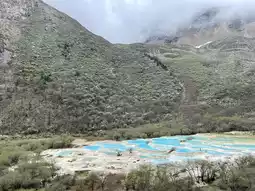 And then… what I had been waiting for arrived: the Five-Colored Ponds. I stood there staring for a long moment, motionless. The water was so clear that it reflected a cascade of blues, greens, yellows, and golds, alternating like a fairytale mirror. Some ponds were small, others large, cascading down a natural staircase. From a distance, it looked like a rainbow carpet in the valley.