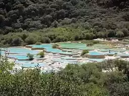 The main highlight of Huanglong's fame. These pools, adorned with a variety of colors, ranging from blue, emerald green, and gold, are formed by calcium deposits in the water, creating cascading cascades down the mountainsides.